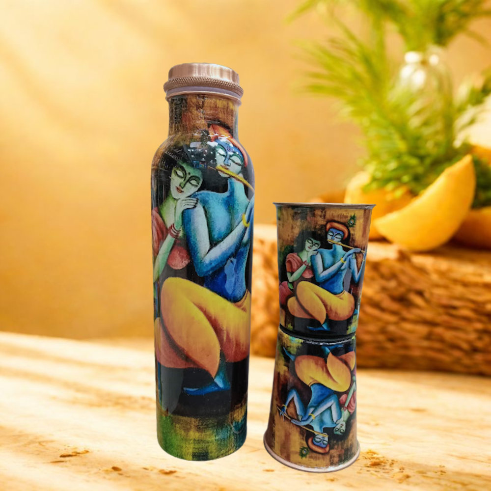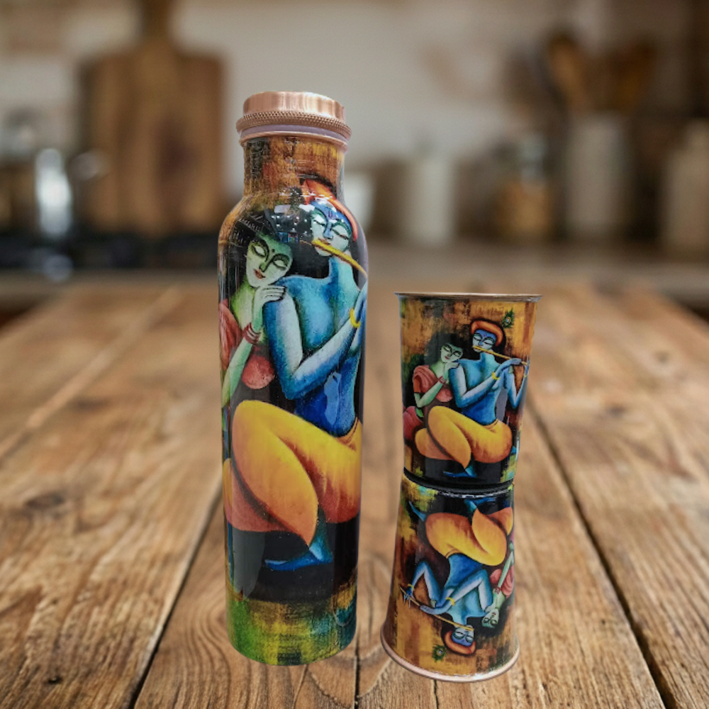 The Tanmaya #C013 Copper Gift Set is a beautifully crafted art-inspired copper set that blends traditional wellness with vibrant artistic expression. Made from 99% pure copper, this set features a glossy finish with hand-painted artwork, making it an eye-catching choice for premium gifting and boutique collections.